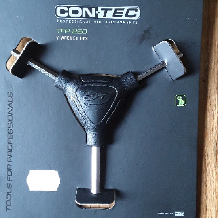 Y Schlüssel mit den 3 gängigen Inbus Größen am Fahrrad.